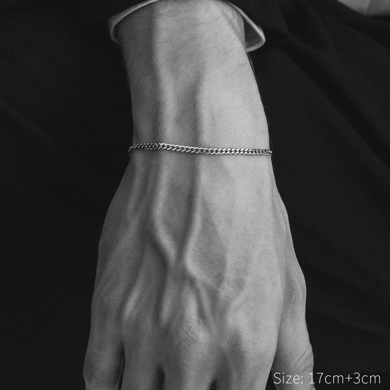 存在感がありながらも、軽やかで着けやすいチェーンブレスレット。