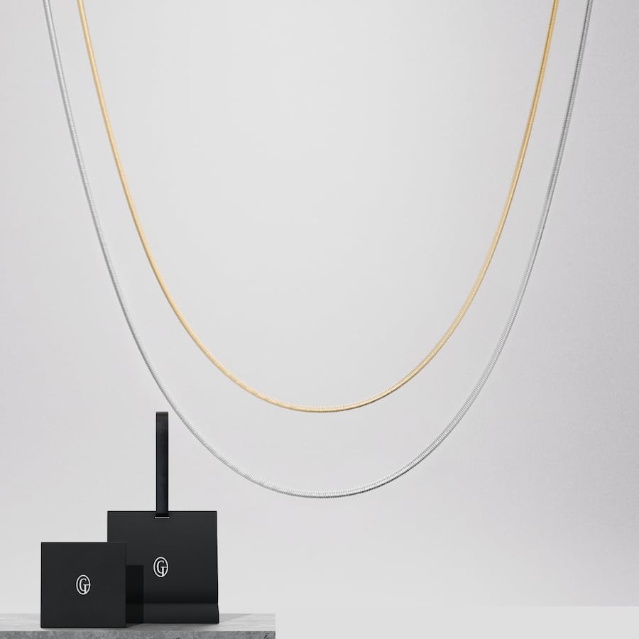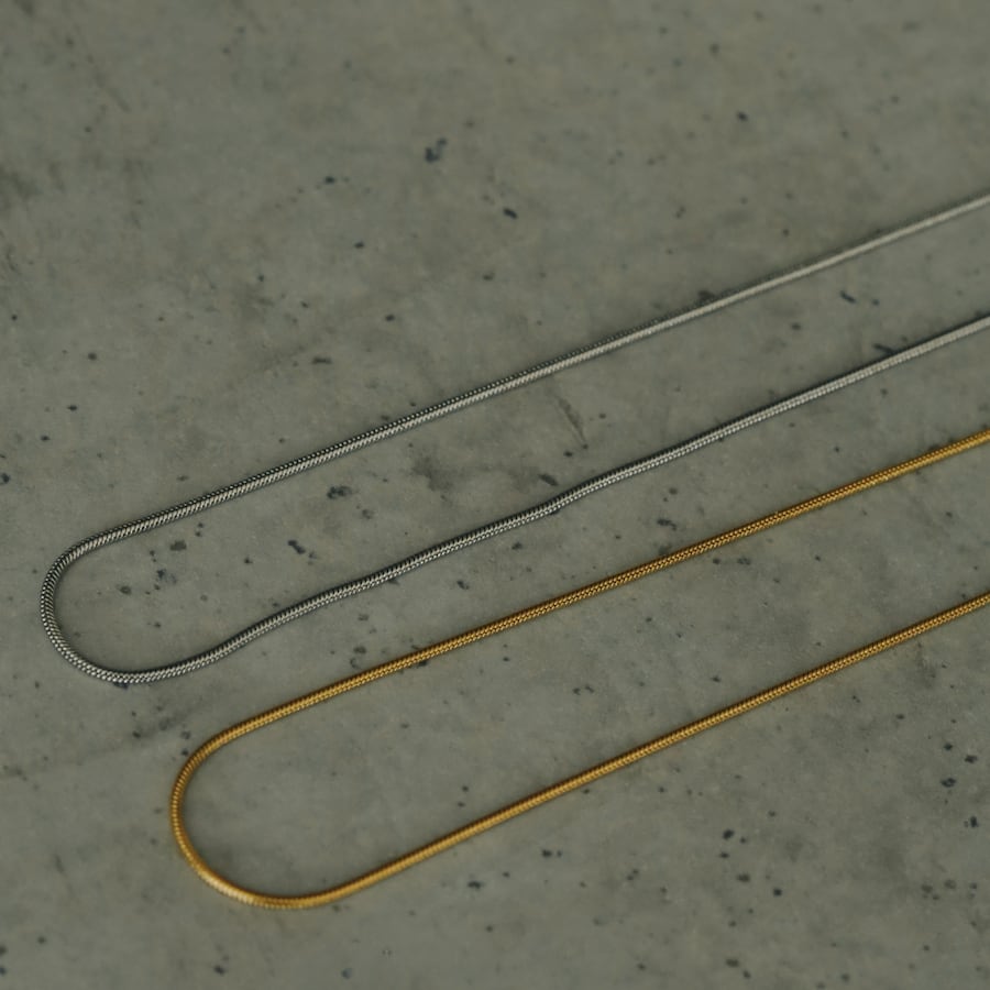異なる長さとカラーを組み合わせた、華奢なスネークチェーンネックレスの2本セット。