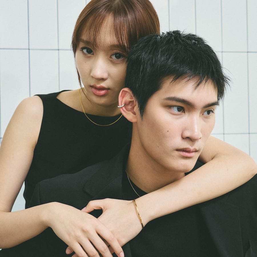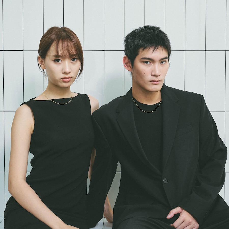 ゴールドとシルバー、そして異なる長さが織りなすレイヤードスタイルは、特別感のあるコーディネートを演出します。