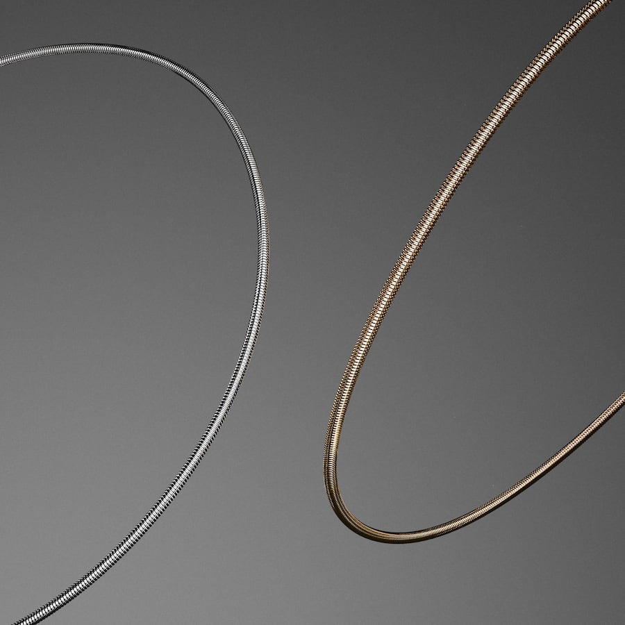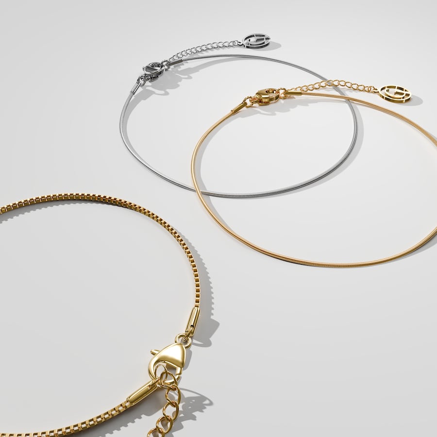 異なる長さとカラーを組み合わせた、華奢なスネークチェーンブレスレットの2本セット。