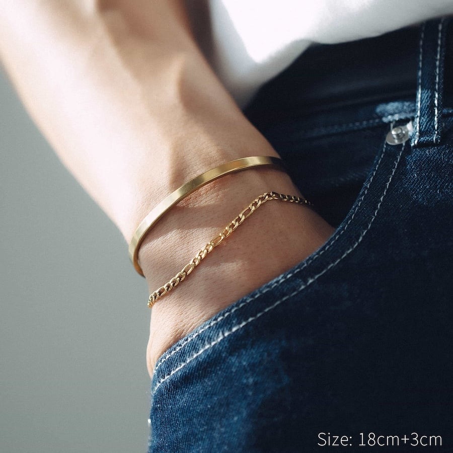 存在感がありながらも、軽やかで着けやすいチェーンブレスレット。