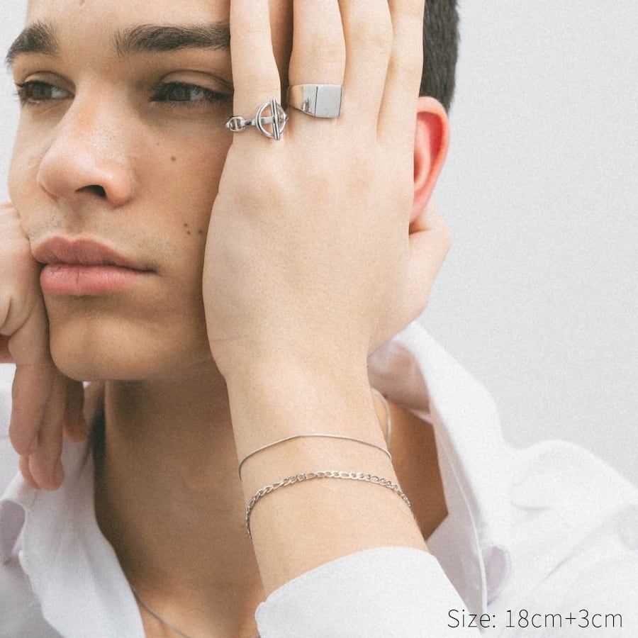 存在感がありながらも、軽やかで着けやすいチェーンブレスレット。