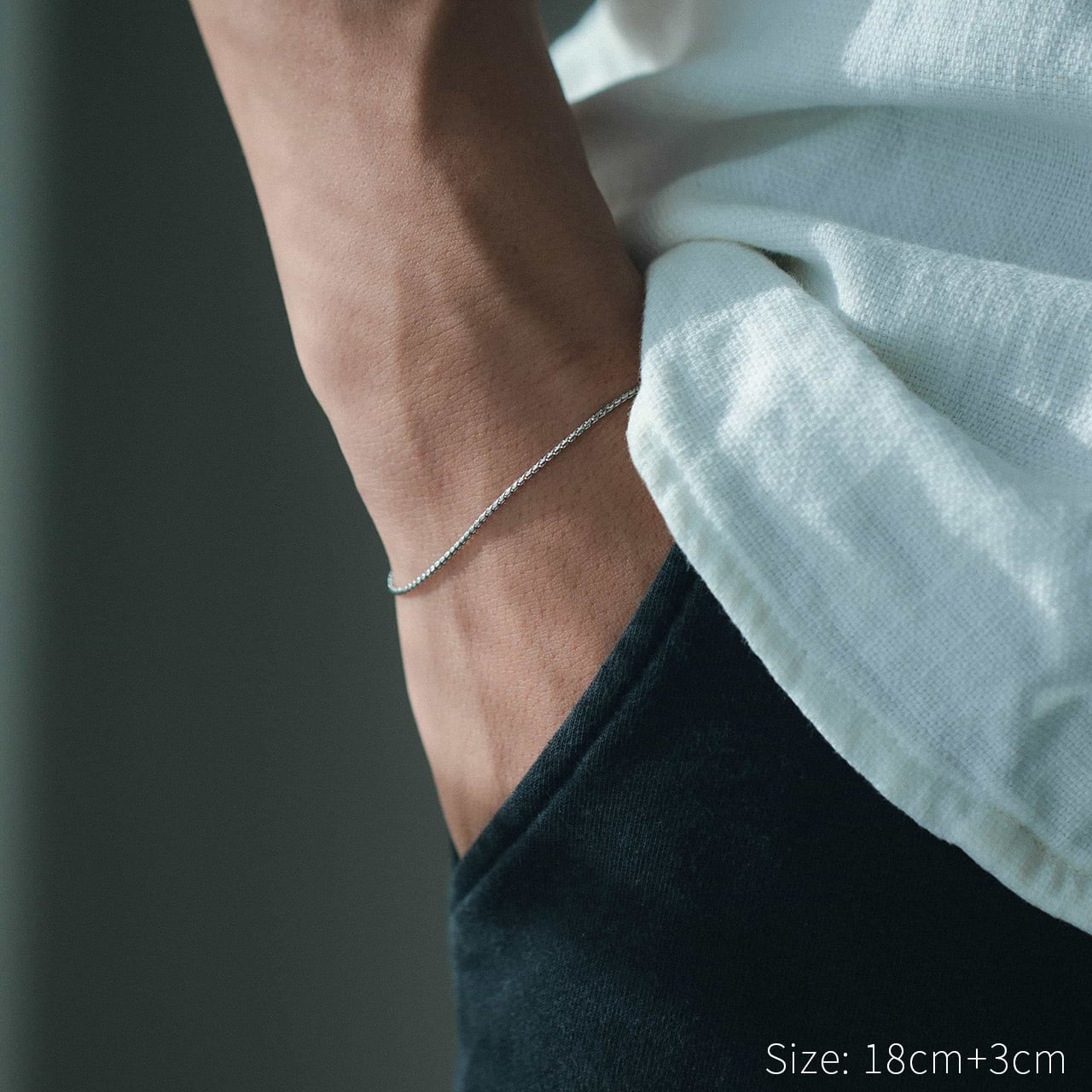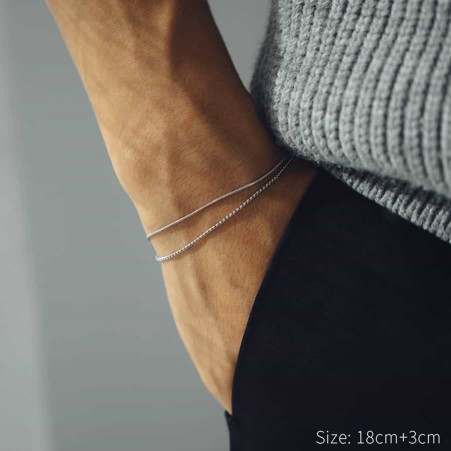 存在感がありながらも、軽やかで着けやすいチェーンブレスレット。