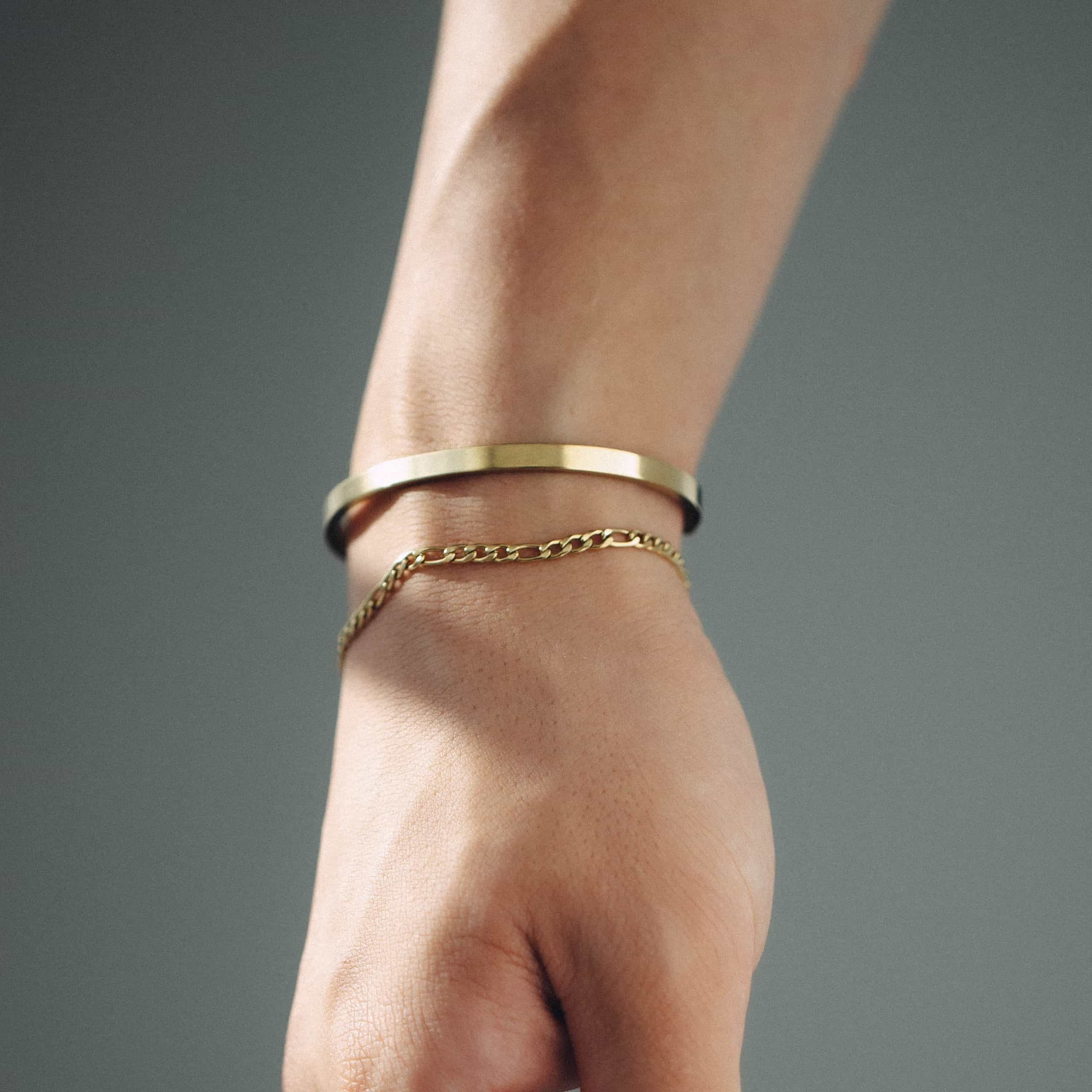 オフィスカジュアルから週末のリラックスまで、シーンを問わず着用いただけるバングル。