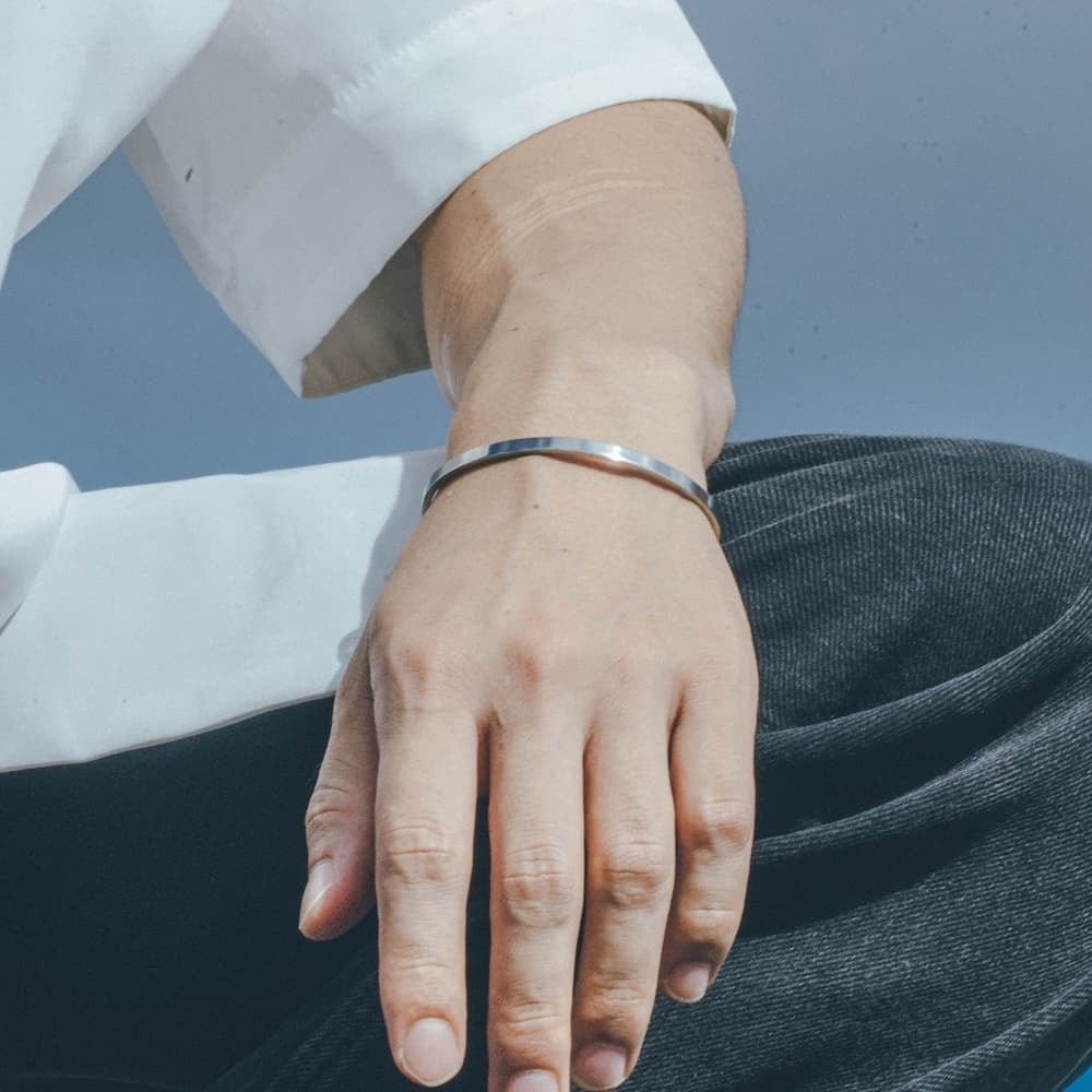 耐久性に優れた316Lステンレススチール製で、錆びや変色に強く、金属アレルギーをお持ちの方も安心してお使いいただけます。日常使いはもちろん、特別な日のアクセサリーとしても活躍します。シンプルでタイムレスなこのバングルは、あらゆるシーンであなたの美しさを引き立て、長く愛用いただけるアイテムです。