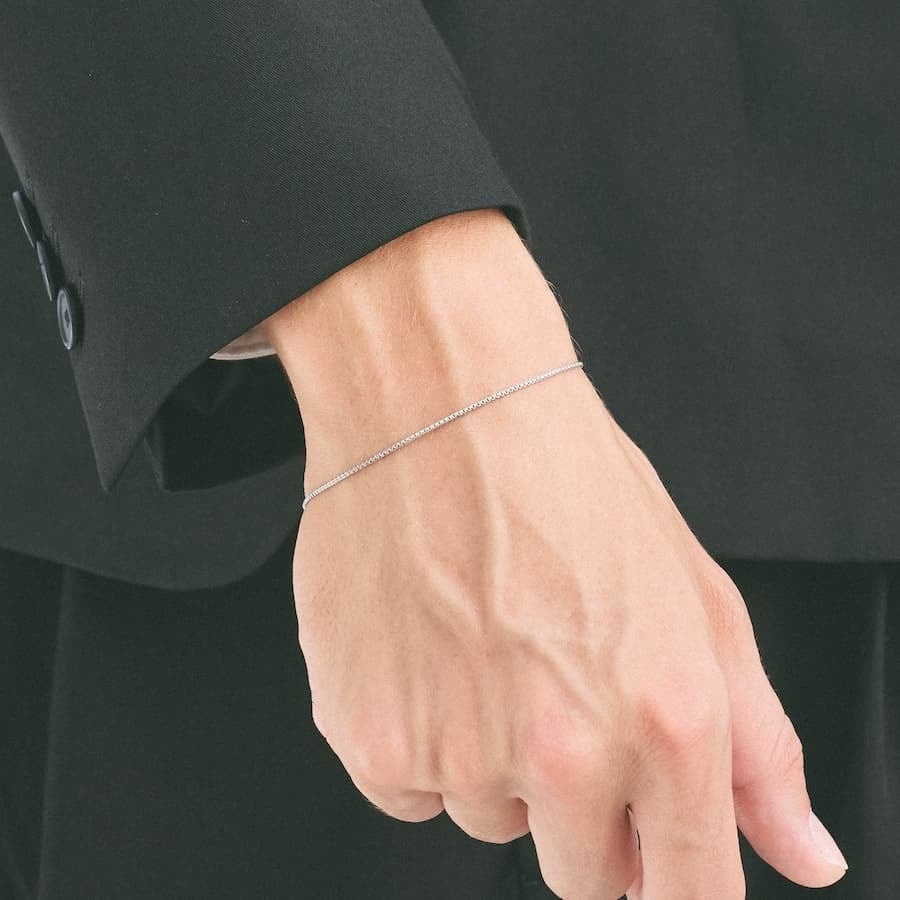 存在感がありながらも、軽やかで着けやすいチェーンブレスレット。