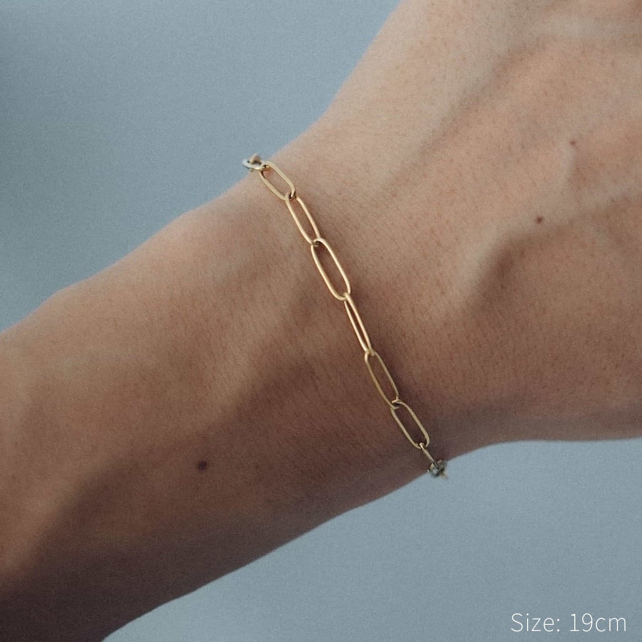 存在感がありながらも、軽やかで着けやすいチェーンブレスレット。